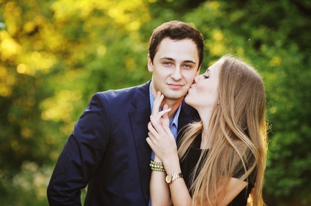 外で若い女の子が彼女の彼氏 夏画像キス カップル の写真素材 画像