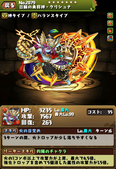 日輪の勇将神 クリシュナ パズドラ 常時5倍の高火力 破壊神